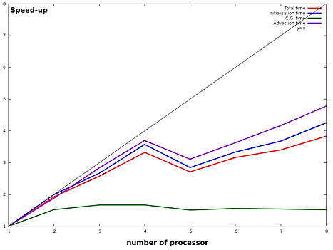 Voici les courbes de Speed-up obtenues avec cet environnement parallèle: